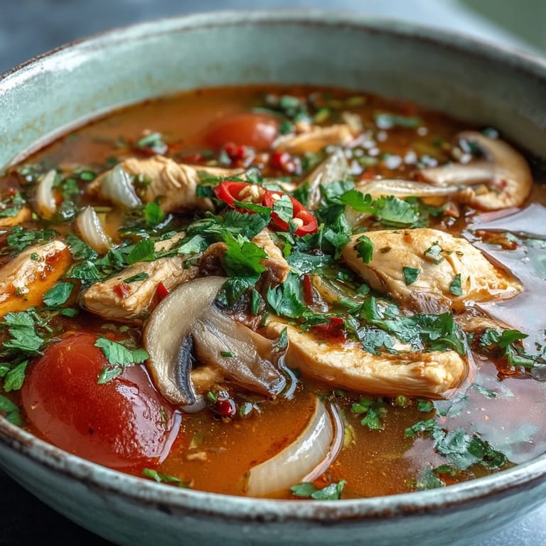 Save My first proper bowl of Tom Yum Gai arrived on a sweltering Bangkok afternoon, served in a cramped street stall where the owner's grandmother stirred the pot with the kind of practiced ease that only comes from decades of muscle memory. The broth hit me all at once—hot, sour, fragrant, alive—and I realized in that moment that this soup wasn't just food; it was theater. Years later, I still chase that feeling when I make it at home, though now I understand that the magic lives in respecting each ingredient's role and knowing when to stop fussing.